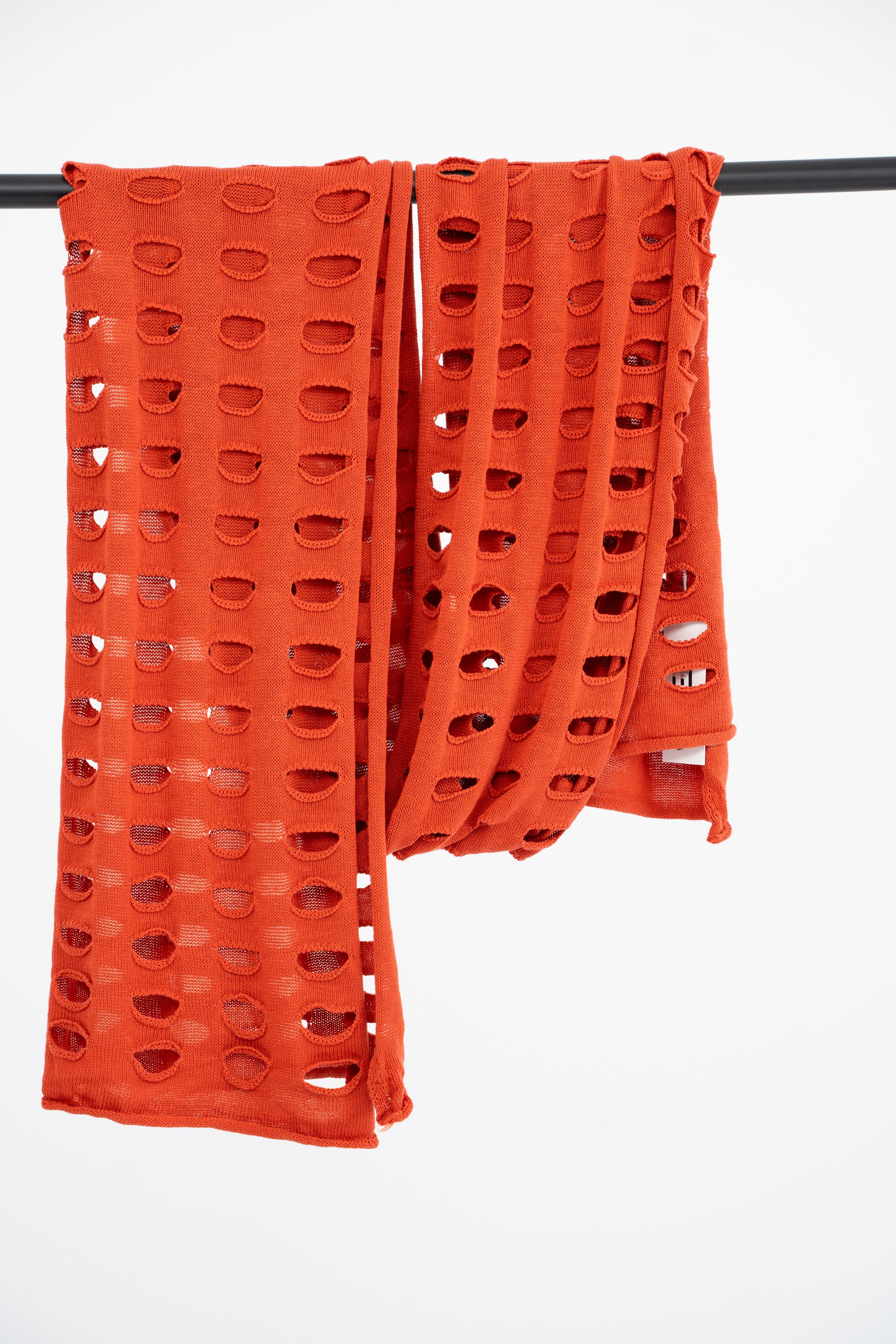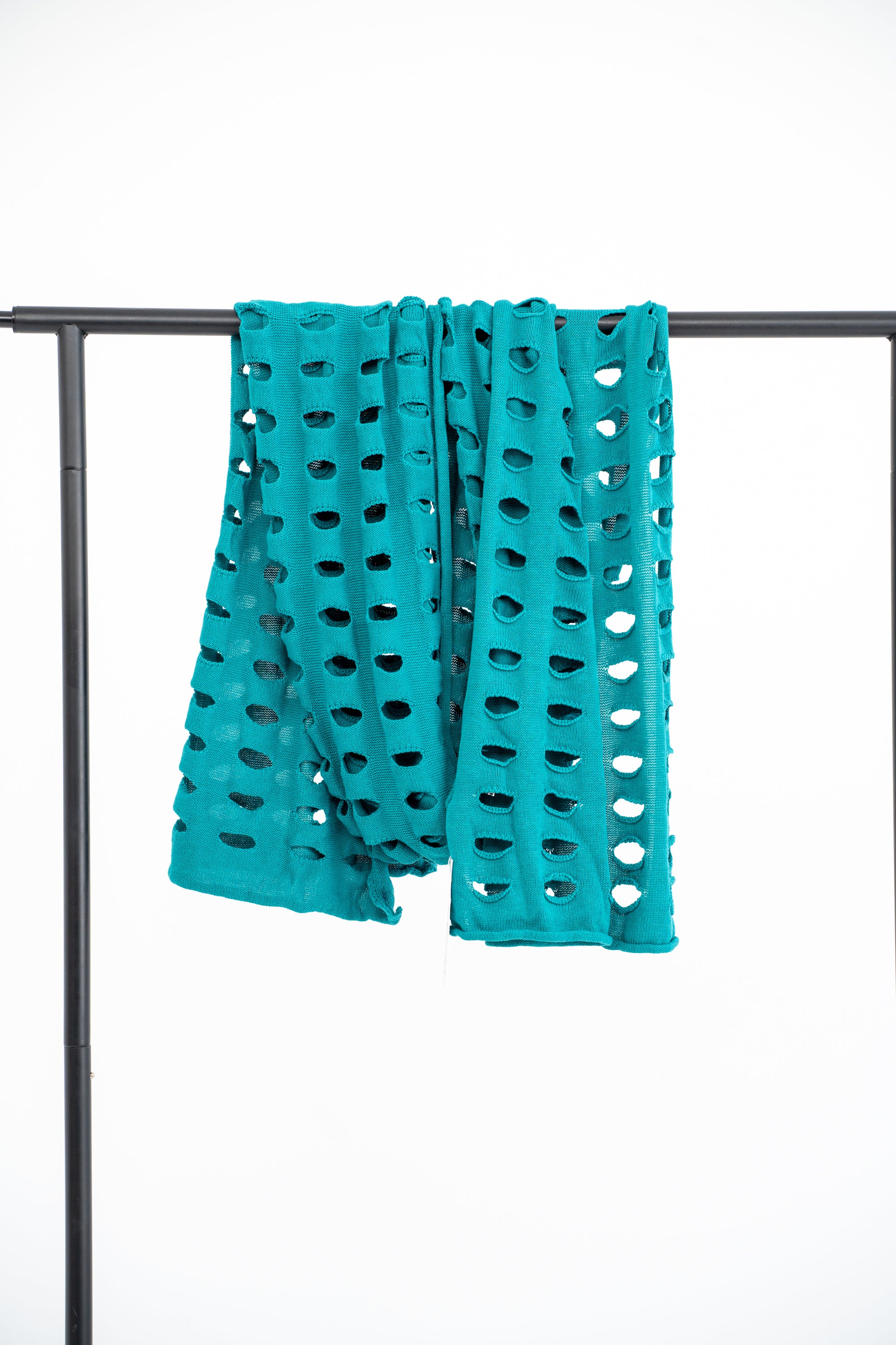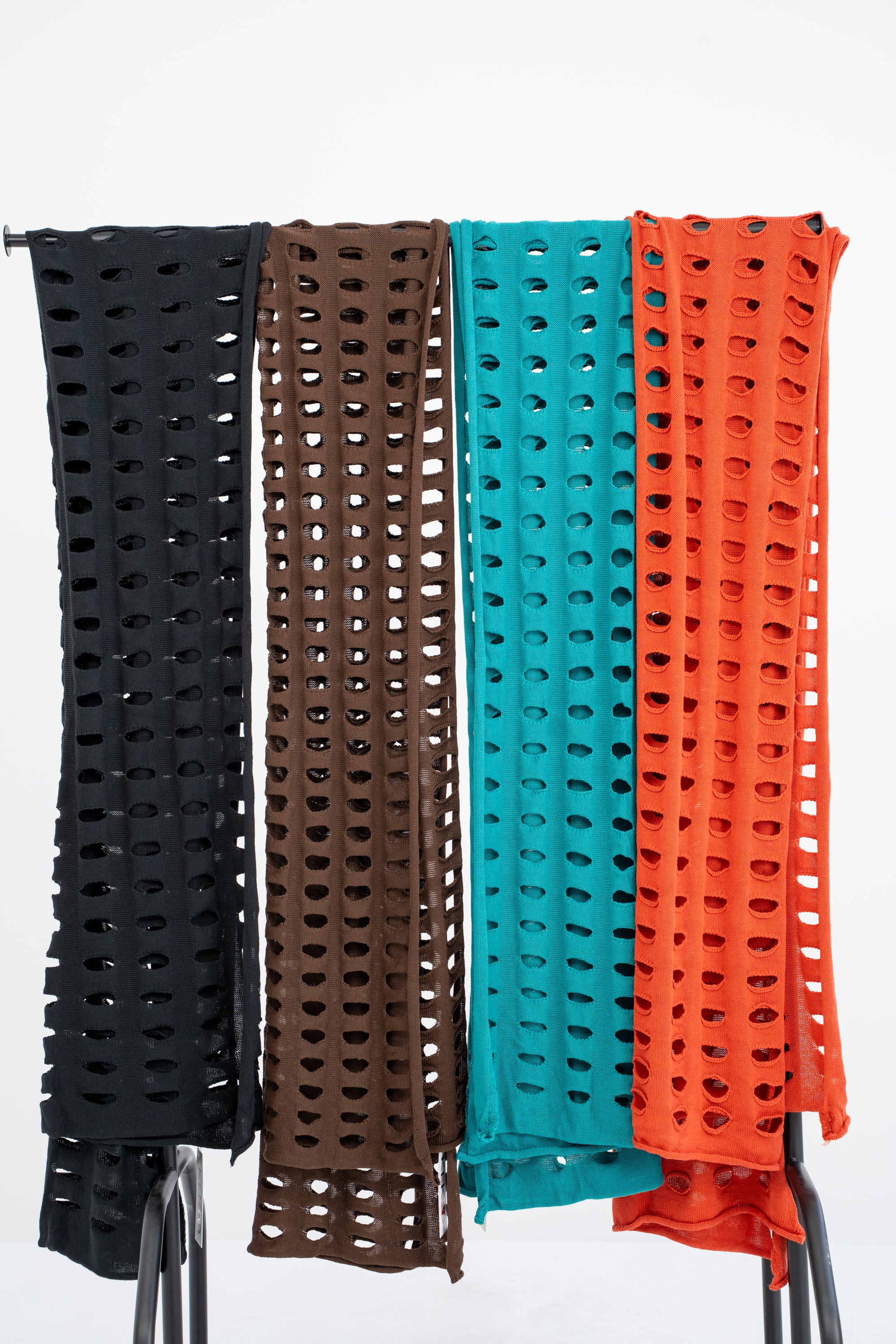 Ein Schal, der auffällt – leicht, weich und mit seinem außergewöhnlichen Cut-Out-Design ein echtes Statement-Piece für kreative Looks.