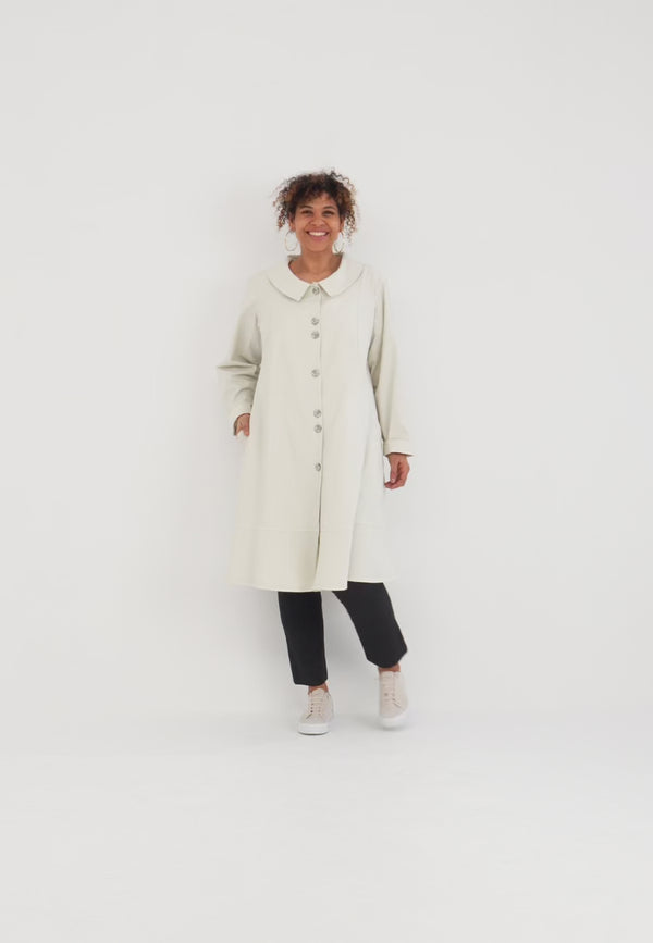 Manche Teile machen ein Outfit sofort „fertig“ – ohne laut zu sein. Genau das kann der „Niva“ Leichtmantel. Der charmante Rundkragen verleiht ihm eine feminine Note, während die klare Knopfleiste und die ruhigen Linien den Look modern halten. Die locker fallende A-Linie umspielt den Körper, schenkt Luftigkeit und lässt dir jede Freiheit – ob über Shirt, Strick oder Kleid.